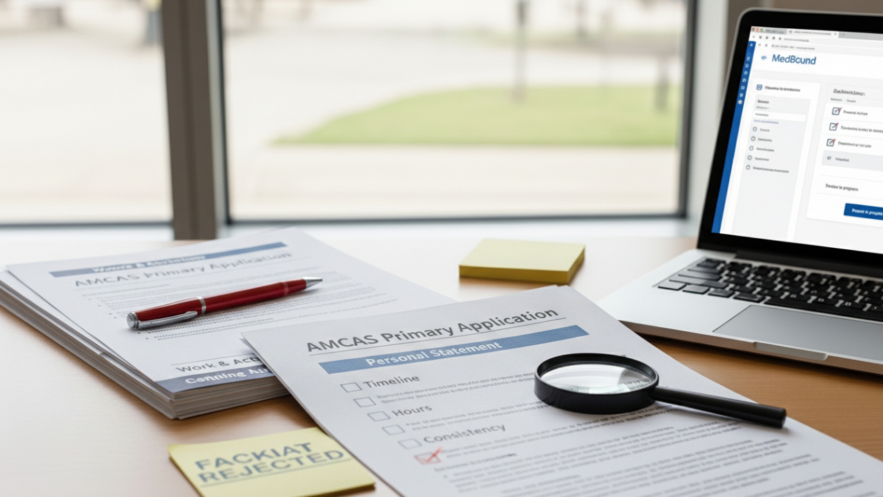 Here's what actually happens when an admissions committee member opens your AMCAS: They don't just read your personal statement and nod thoughtfully. They audit your application. They're doing mental math on your hours. They're checking if your timeline adds up against a typical course load. They're looking for mismatches between what you say in your personal statement and what shows up in your activities list. They're checking if your 700-character activity blurb matches what they'd expect from someone with that title.
